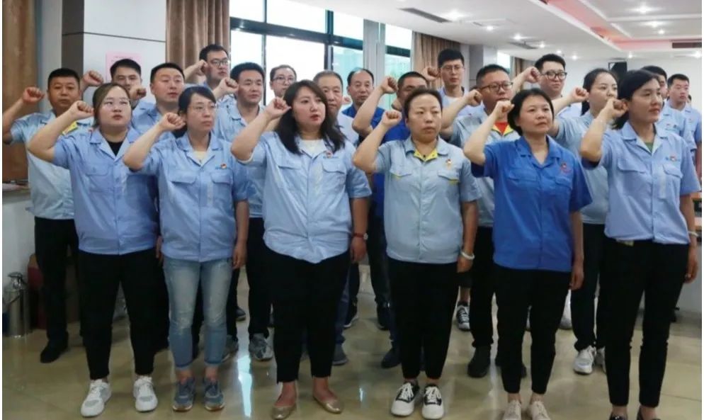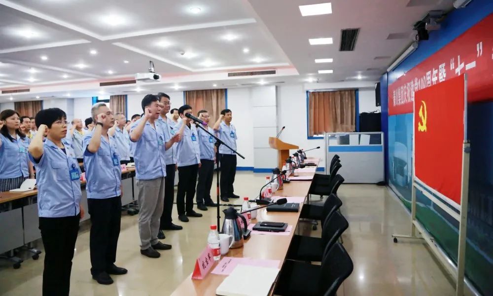 面對鮮紅的中國共產(chǎn)黨黨旗,嚴鑒鉑書記帶領(lǐng)班子成員、新發(fā)展黨員、全體參會黨員握舉右拳,鄭重宣誓,重溫入黨誓詞。